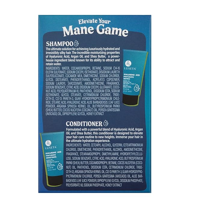 - Hydrating and Moisturizing: This moisturizing shampoo and conditioner set contains Hyaluronic Acid which can helps to moisturize and hydrate the hair while promoting shine and softness.