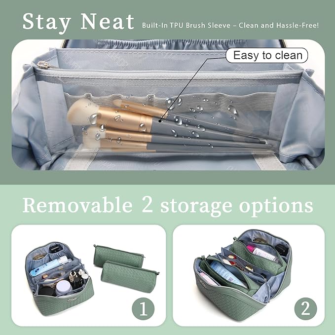 - Multifunctional Makeup Bag: Designed to be dirt-resistant and waterproof, this makeup travel organizer bag is suitable for various settings, whether it's on your dresser, in the bathroom, outdoors, in the car,in the train or packed in your luggage. Keep it by your side to meet your makeup needs anytime, anywhere.