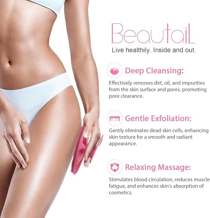 - MORE HYGIENIC THAN TRADITIONAL OPTIONS: Unlike loofahs, washcloths, or exfoliating sponges, the BEAUTAIL silicone body scrubber is crafted from non-porous, self-cleaning silicone that resists water absorption and dries quickly. This means no lingering moisture, reducing the risk of bac-teria or mo-ld buildup for a cleaner, fresher shower experience.