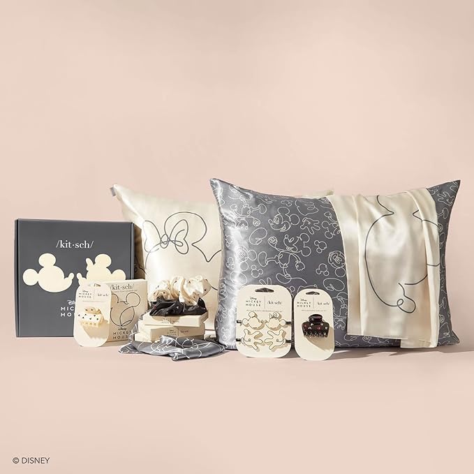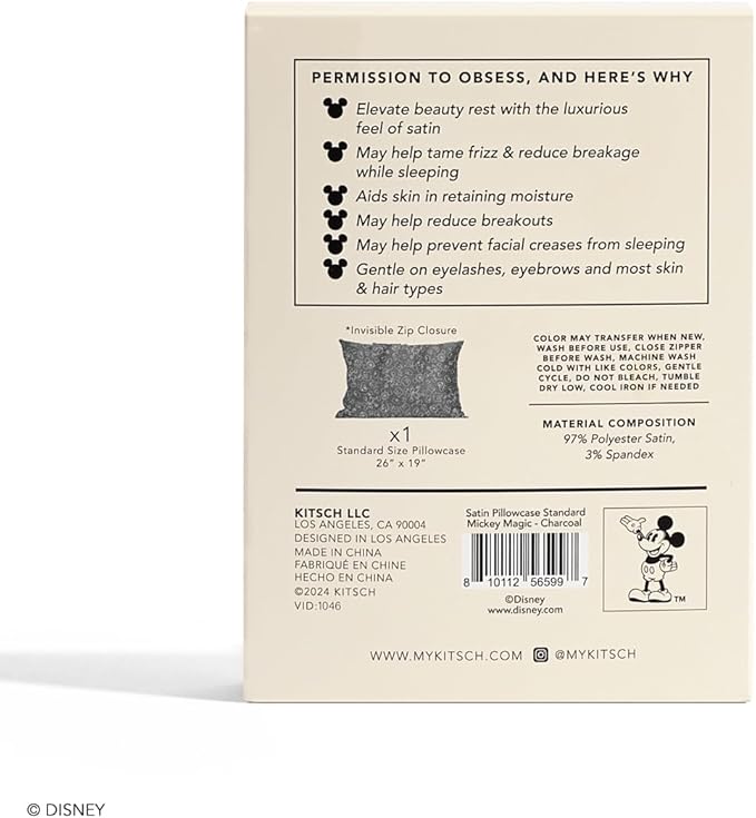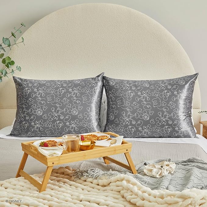 Kitsch & Disney Mickey Mouse Satin Pillowcase with Zipper Softer Than Silk, Cooling Pillow Case for Hair & Skin, Wrinkle-Free, Machine Washable, Queen/Standard 19x26