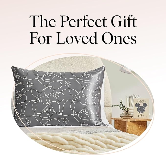 Kitsch Disney Mickey Mouse Satin Pillowcase with Zipper Softer Than Silk, Cooling Pillow Case for Hair & Skin, Wrinkle-Free, Machine Washable, Queen/Standard (19x26)