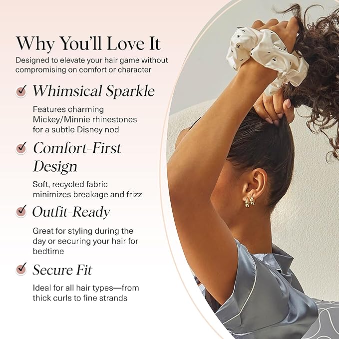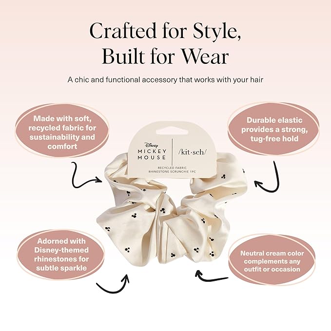 Kitsch & Mickey/Minnie Fabric Rhinestone Scrunchies for Girls and Women, Hair Scrunchies for All Hair Types, Perfect for Updo | Ideal Gifts for Women (Cream) - 1 Piece