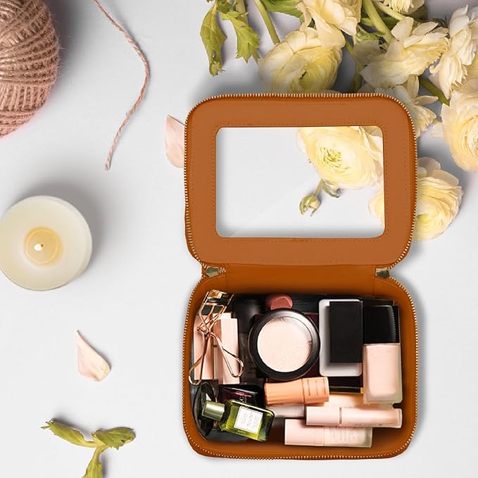 - 【ROOMY & STYLISH】 Measuring 8.3'' x 6.2'' x 2.1'', this makeup travel organizer embodies luxury and style. Its minimalist boxy design in a chic color exudes elegance; Crafted from exquisite Vegan leather and adorned with polished hardware