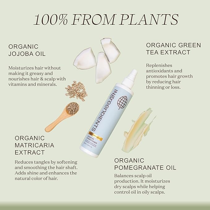 Ingreendients Detangler and Leave In Conditioner made with Organic ingredients - Sulfate-Free, Color-Safe, Silicone-Free, Cruelty-Free, Gluten Free (9.6 FL OZ)