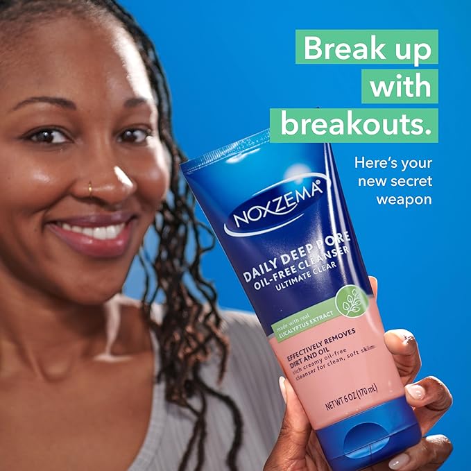 - NOXZEMA DAILY DEEP PORE CLEANSER – Noxzema deep clean face wash removes dirt, oil, and makeup while helping to visibly reduce shine. Start the day with a fresh glow and cleanse away the chaos before bed. A go-to for clear skin, no matter what life holds.