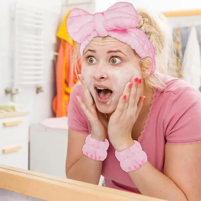 Spa Headband,Makeup Headband Set,For Face Washing Skin Care Accessories,Girls Headbands and Wristbands for Washing Face Head and Wrist Band Set