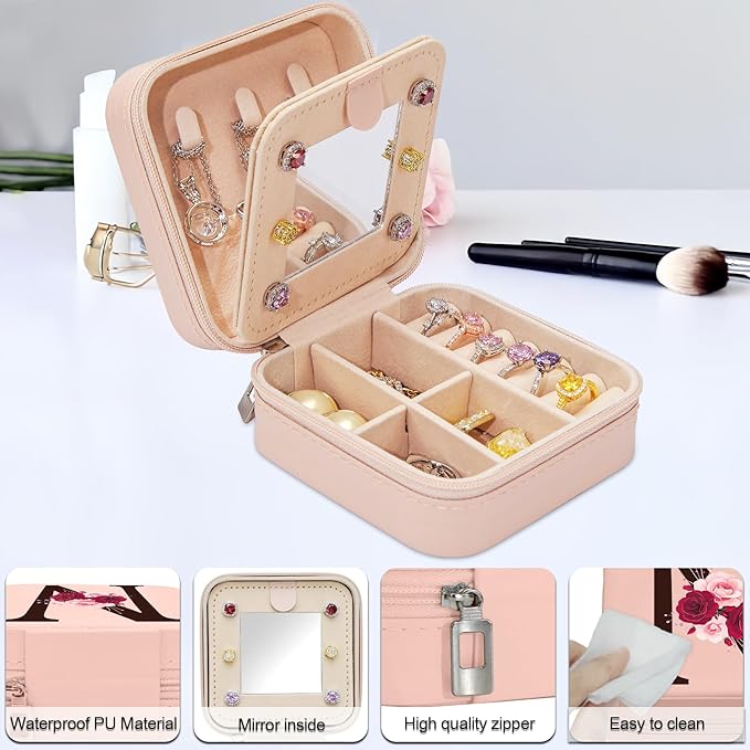 Birthday Gifts for Women,Initial Canvas Tote Bag,Monogrammed Gift for Women,16oz Initial Glass Cup,Makeup Bag with Zipper,Jewelry Organizer Box,Personalized Gifts for Mom-N