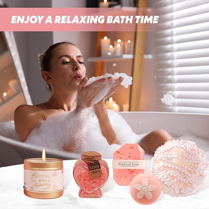 - 🎁【Relaxing Spa Gift Set for Women】Imagine the surprise moment when she receives the gift box, light the aroma candle and the light fragrance fills the whole bathroom, taking away the fatigue and stress of the day. Includes a diamond handmade soap and a bath ball to release a fresh, long-lasting scent for a dreamy bubble bath experience.