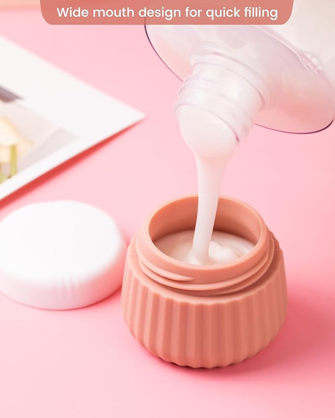- Wide Opening Design: Our refillable Travel Containers for Toiletries have a large opening that makes it easy to fill and apply creams, lotions or sunscreens, Easy to clean cream jars, the brush can be easily inserted for cleaning.