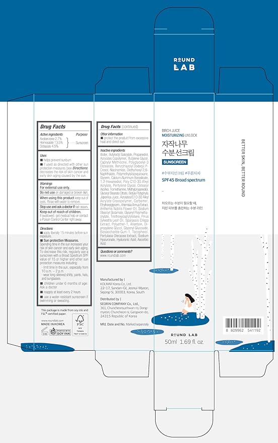 ROUND LAB Birch Juice Moisturizing UV LOCK SPF 45 | NBC No1 SPF, Glow Sunscreen for Daily Skincare, Non-toxic, UV Protection, Lightweight, Oil-Free, Organic, Korean Sunscreen (1.69 Fl Oz)