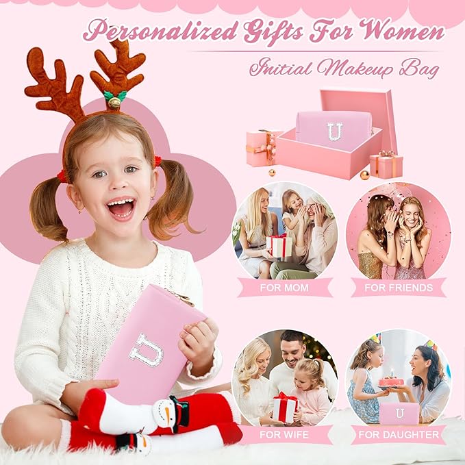 - 【 Personalized Gift 】This personalized makeup bag has her own shiny shinier initials sewn on the front. Perfect as a gift for 12 13 14 15 16 years old girl, daughters, granddaughters, girlfriends, and best friends on special occasions such as Valentine's Day, Christmas, or anniversaries or birthdays. No girl would refuse such a beautiful bag!