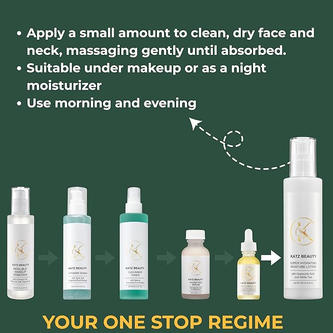 Katz Beauty Super Hydrating Moisture Lotion - Hyaluronic Acid & White Tea for Dry, Oily, Sensitive Skin, Non-Comedogenic Face Moisturizer, 5 fl oz