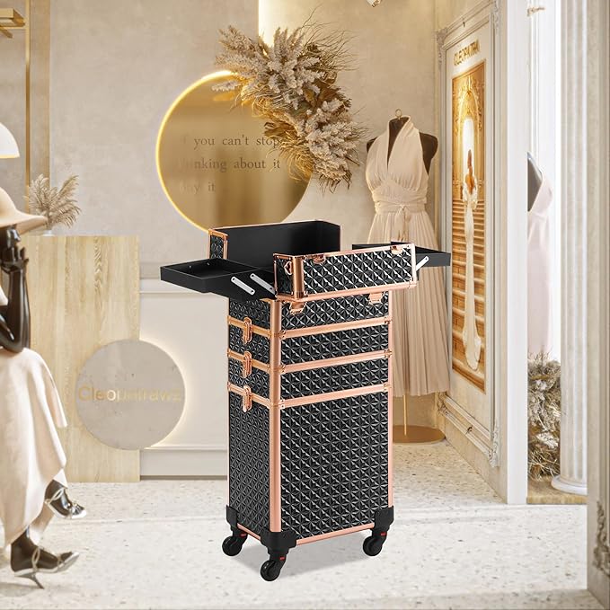 - 【Bonus Lid for Added Convenience:】The rolling makeup case is included a bonus lid that allows you to transform the portable makeup box into a standalone first layer. This means you have 7 different storage layer combinations at your fingertips, providing the ultimate versatility and organization for your beauty essentials.