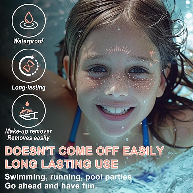 - LONG-LASTING & WATERPROOF - Keep your radiant look from day to night with LemonSac's waterproof glitter freckles face tattoo. Designed to stay vibrant and intact, these freckle tattoos will withstand a full day of activities—whether you're braving the rain, hitting the pool, or dancing at a music festival. No need to worry about reapplying; our freckle makeup is made to last through all your adventures.