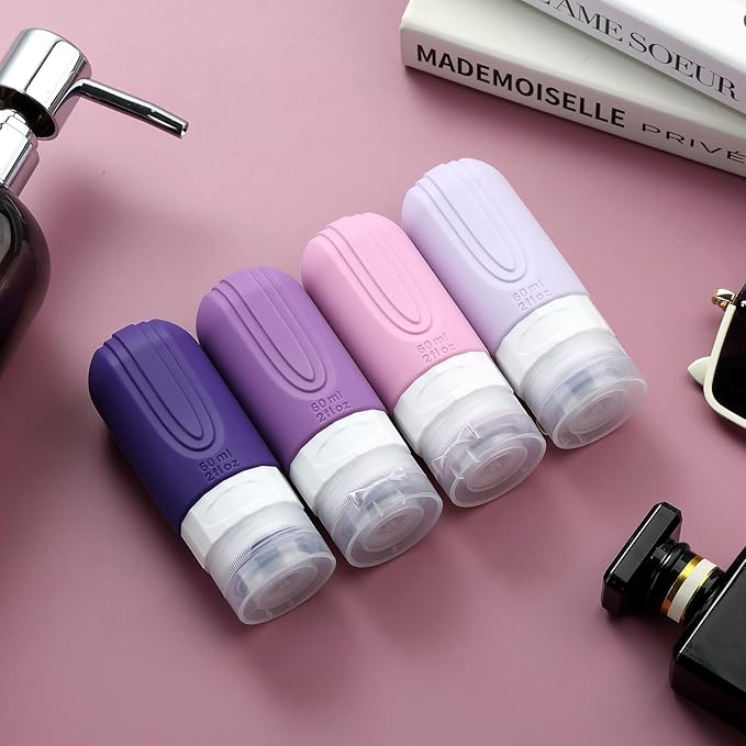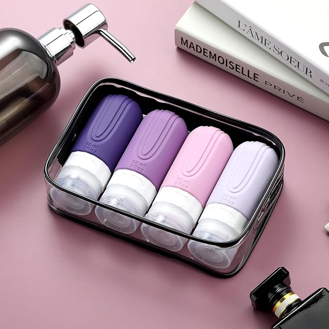 - TSA carry on approval: 4 pack 2 oz silicone travel bottles, very suitable for shampoo, conditioner, shower gel, lotion, hand sanitizer and shower gel. It is equipped with a high-quality zipper transparent wash bag, which saves space and allows you to travel long distance freely like a professional.