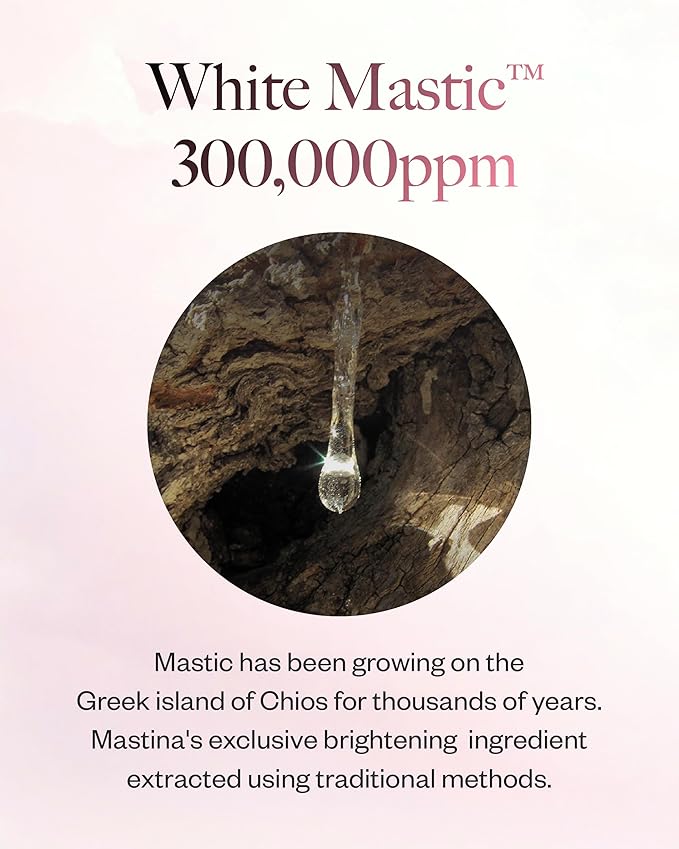 - Mastic gum extract: Enriched with mastic gum extract from Greece; formulated to enhance skin’s clarity; helps support a luminous, refreshed appearance with every application