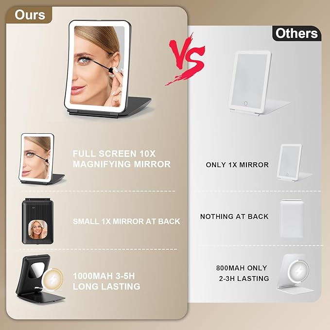 - 👍【Extra 1x Mirror and Memory Function】: The small 1x mirror on the back allows you to better check your overall makeup and hairstyle.Our mirror also has an intelligent light memory function, which can easily use the last adjusted brightness, helping you quickly get the most suitable brightness and create a perfect makeup.