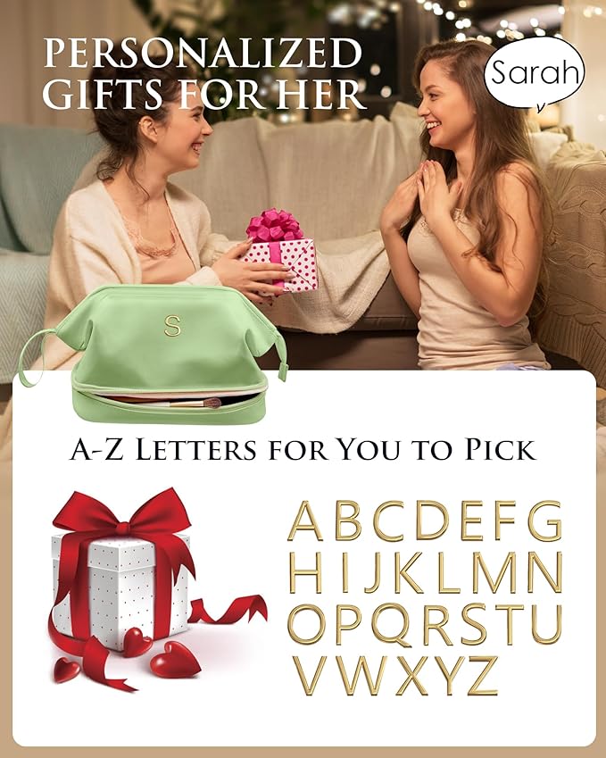 Bridesmaid Gifts, Initial Large Makeup Bag, Bride To Be Gifts, Double Layer Cosmetic Bag, Waterproof PU Travel Toiletry Bag for Bachelorette Party Women Wedding Bridal, Bride Gifts