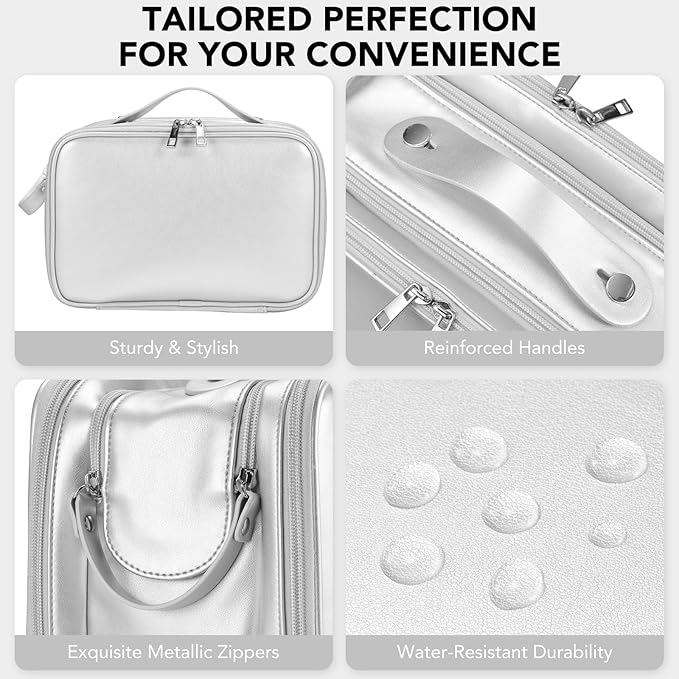 - Easier Access: The large opening of the cosmetic bag allows you to see all your cosmetics at once, and the double zip design allows for easy and quick storage, and the top leather handle is easy to carry and comfortable to grip. Whether you are at home or on the go, it is your essential fashion companion