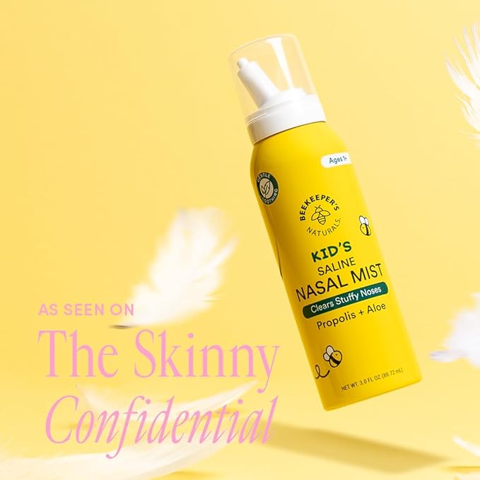 Kids' Saline Nasal Mist by Beekeeper's Naturals, Clears Stuff Noses, Nasal Spray for Kids 1+ w/ Saline, Aloe & Propolis, 3 fl oz