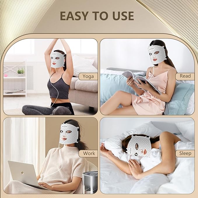- Continuous Use of Red Light Mask: It is recommended to use the red light mask 3 to 4 times a week, adding our product to your daily routine (the eff-ect varies from person to person, and continuous use is required to bring better results)