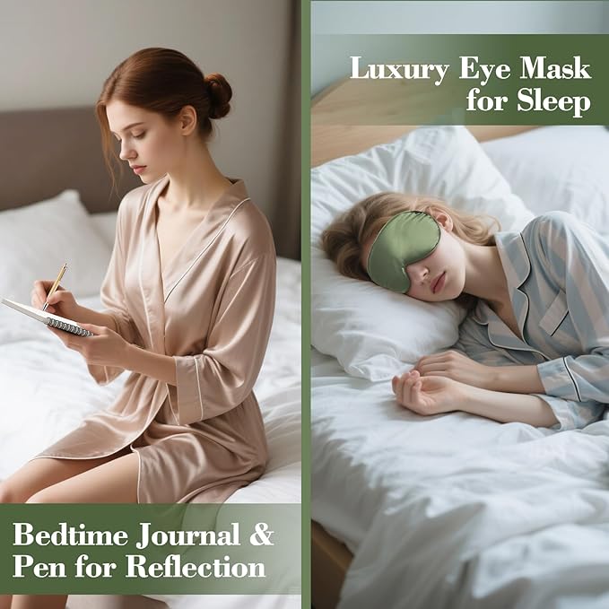 - Wellness & Restorative Sleep Accessories – Because Relaxation is More Than Just Skin Deep True self-care extends beyond skincare, which is why this spa baskets for women gift includes wellness-focused accessories that encourage rest and mindfulness. The eye mask helps to block out light for a deeper, more restful sleep. Whether used during bedtime, meditation, or a quick nap, it promotes relaxation and rejuvenation. Additionally, the notebook and pencil offer a space for self-reflection, journaling, and goal setting. Whether writing down thoughts, dreams, or gratitude lists.