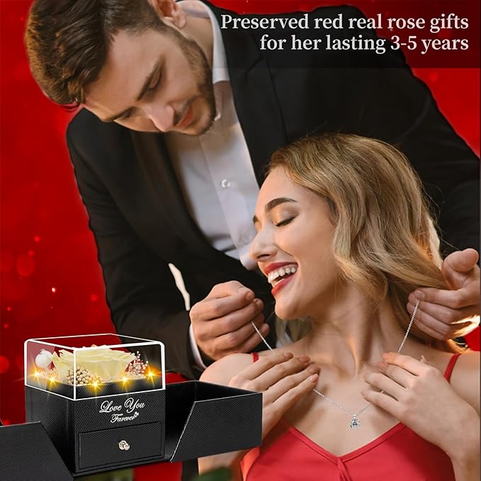 - 🎁【Im Sorry Gifts for Her Package】Mother's Day Gift Ideas Preserved Roses are well wrapped in the gift box,so that you could give directly without spend time on package. As an exquisite luxury gift,it can also store other jewelry. The necklace can be worn, and the rose box can be placed indoors as an ornament,Your lover will feel happy every day looking at it. 1 Preserved Eternal Rose + 1 Gift Box + 1 Double Heart Necklace(With I Love Y