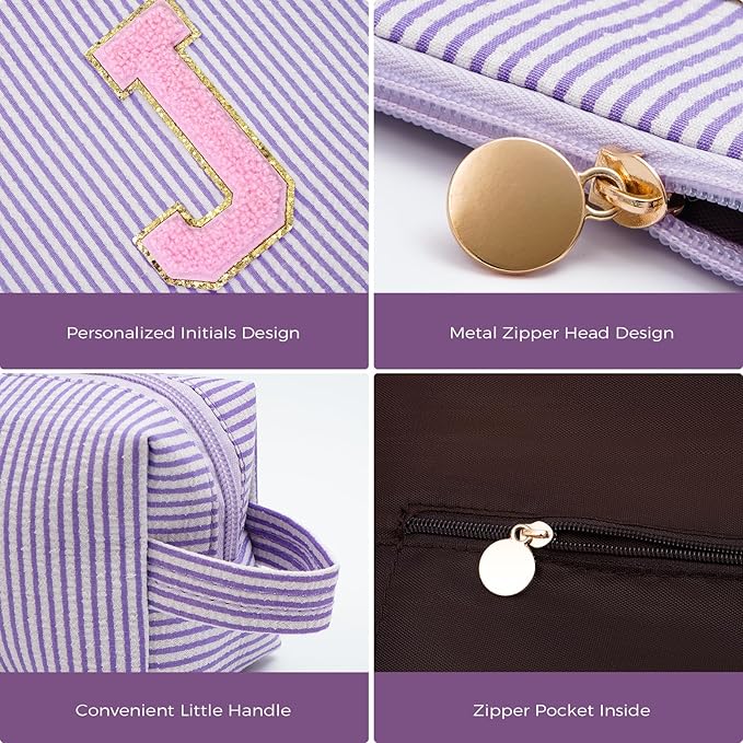 Monogrammed Gifts for Women - Cosmetic Bag for Teen,Initial Cute Makeup Bag Set for Women,Trendy Pouch for Niece Sister Friend Female Her,Birthday Gifts for Daughter - Lavender,J