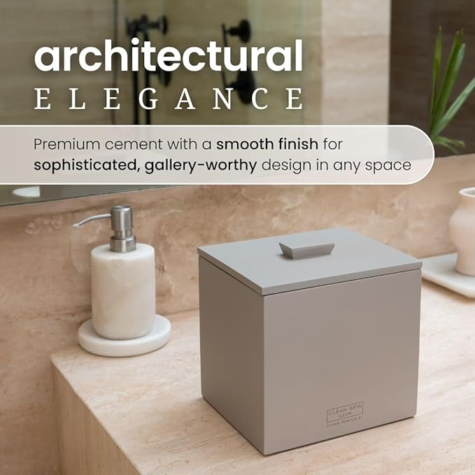CLEAN SKIN CLUB Cement Box for 50 Disposable Clean Towels XL (Towels NOT Included), Concrete Container for Face Towelettes Bathroom Counter Storage, Cleansing Facial Dry Wipes - Taupe Stone