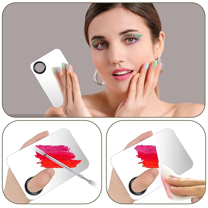 - 【Wide Applications】This makeup mixing tray can not only be used for mixing colors but also serves as a mirror.Makeup tools is suitable for blending a variety of cosmetics such as foundation,eyeshadow,mascara,lipstick and can also be used with nail polish,gels,nail art pigments
