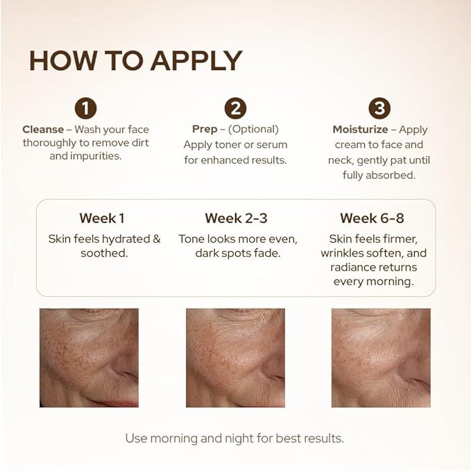 - Deep Hydration & Barrier Repair – Infused with Hyaluronic Acid and Panthenol, this lightweight yet deeply moisturizing cream delivers intense, long-lasting moisture. It soothes, calms, and helps strengthen the skin barrier, keeping your complexion soft, balanced, and hydrated all night long.