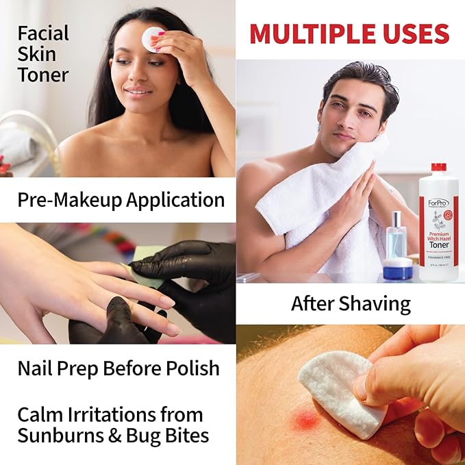 - Multiple Uses: Besides using as a skin toner, perfect for after shaving (both for men and women); Pre-make-up application; Prep nails before applying nail polish; and excellent for use to calm irritations from sunburns and mosquito bites.