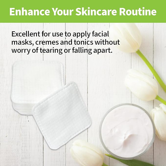- Extra Durable Cotton Pads: Guaranteed not to shred, tear or dissolve when used with facial tonics, makeup remover, face masks or any other product for your face. Expertly stitched to ensure the cotton pad will stay intact 100% of the time during your use.
