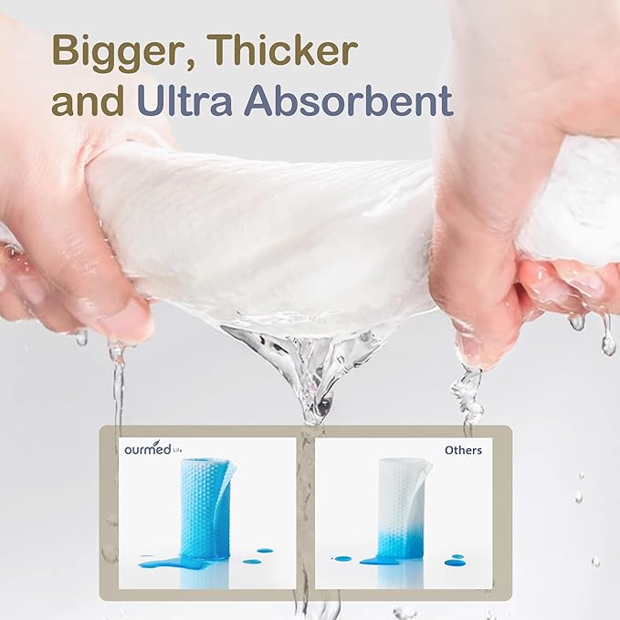 - [Extra Large, Thick, and Ultra-Absorbent] Each disposable face towel measures a generous 12×12 inches (30×30 cm), larger and thicker than standard face cloths, ensuring superior absorbency for face and body cleansing. With a convenient pack of 60, Ourmed Life disposable face towels provide ample supply for all your daily skincare routines.