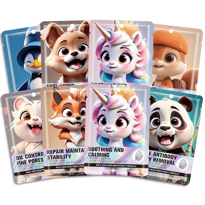 Kaely 8 Pack White Sheet Masks, Face Masks for Kids Teens Skin Care, Soothe Facial Mask for All Skin Types, Girls Night Skincare Spa Party, Birthday Gifts for Women Men, Set01