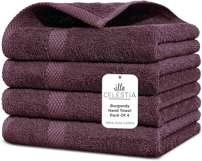 100% Cotton Hand Towel Set of 4, (16 x 28 inches) Sustainable, Soft, Highly Absorbent, Quick Drying, Combed Cotton Hand Towels Pack of 4 Ideal for Hotels, Spa, Bathroom, Dorm, Burgandy