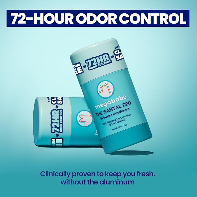 Megababe Skincare Deodorant - The Santal Deo with 72 hour Odor Protection | Restorative Ceramide & Sandalwood | Aluminum-Free, All Natural | 2.6 oz