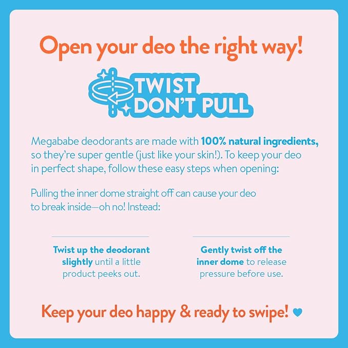 - SILKY SMOOTH STICK: The vegan stick glides on smooth (no tugging or crumbling!). Please allow 2 weeks for pits to adjust from a traditional antiperspirant. During especially hot months, reapplications may be necessary throughout the day!