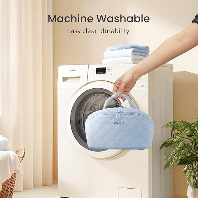 - 【Triple-Proof Interior】:Featuring SGS-certified functional lining, the interior resists leaks, stains, and unwanted odors. Safely store liquid serums, loose powders, and makeup brushes without worrying about spills or dampness – ideal as a travel toiletry bag for women.