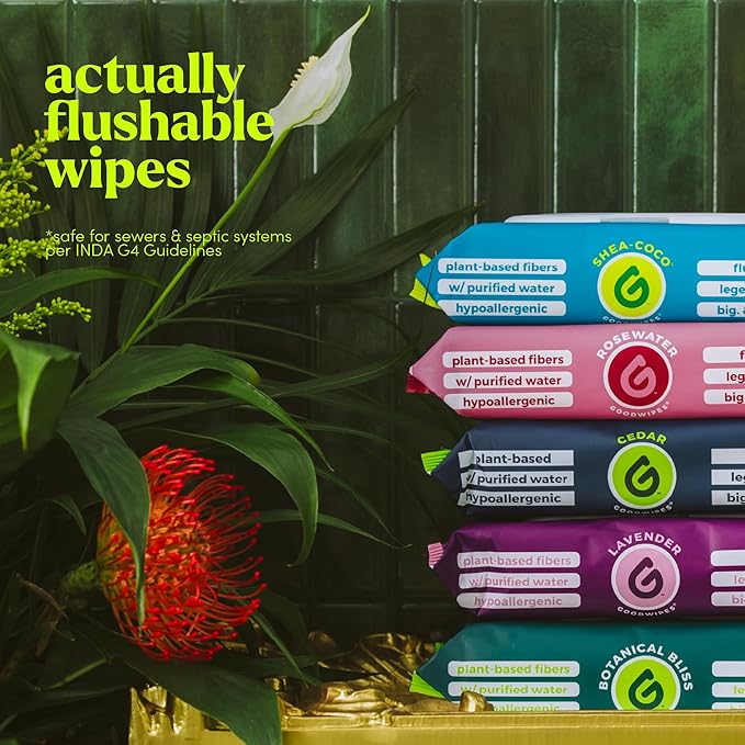 - ACTUALLY FLUSHABLE: goodwipes butt wipes are sewer + septic safe & break down easily after each flush. Made with plant-based fibers & tested to meet INDA G4 Guidelines, they are carefully crafted to deliver a clean you can trust & stress-free flush.