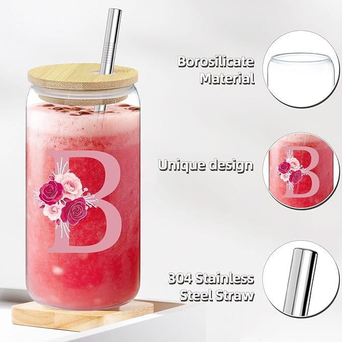 Initial Canvas Tote Bag,Birthday Gifts for Women,Monogrammed Gifts for Women,Initial Glass Cup,Personalized Gifts for Women,Initial Makeup Bag,Unique Gifts for Mom Sister Bestie-B