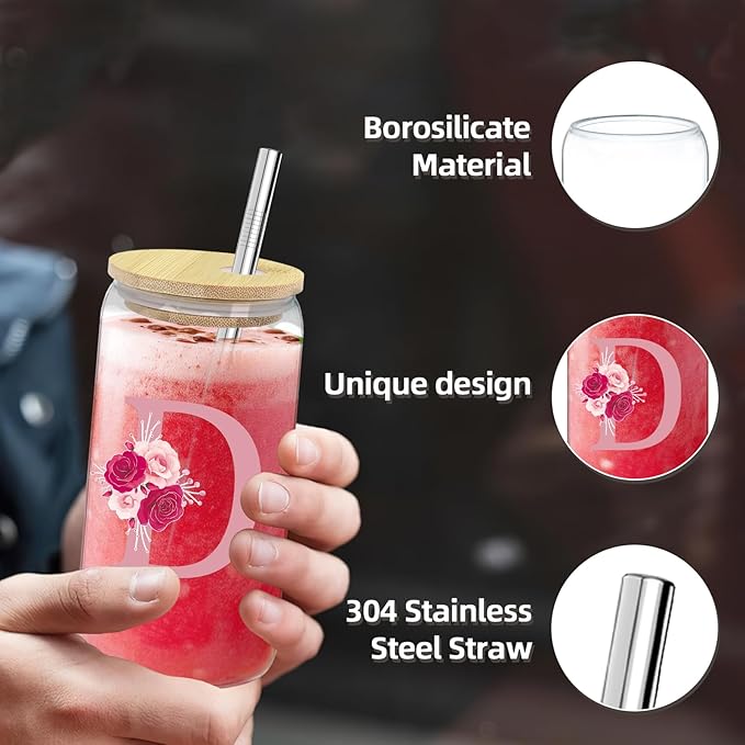 - The set includes: 16oz initial glass cup*1. Tote bag*1. Makeup bag*1. Jewelry storage box*1. Monogrammed pendant*1. Greeting card*1. Gift box*1. A beautiful personalized gift.