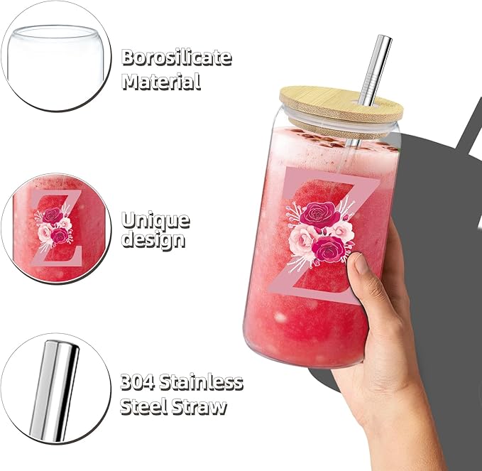- The set includes: 16oz initial glass cup*1. Tote bag*1. Makeup bag*1. Jewelry storage box*1. Monogrammed pendant*1. Greeting card*1. Gift box*1. A beautiful personalized gift.