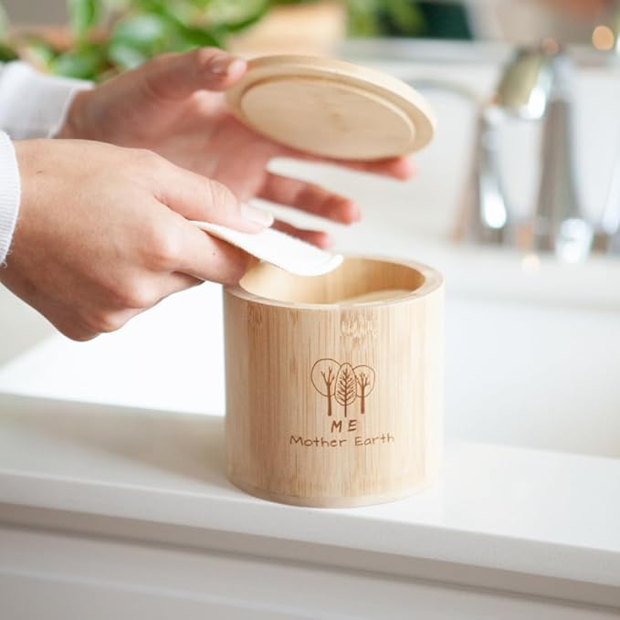 - Eco-Friendly Bamboo Storage Box: Store your cotton rounds in this sleek and natural bamboo box, designed to keep your facial pads clean and organized—a stylish and functional addition to your bathroom.