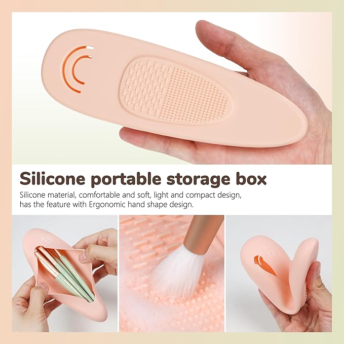 - Essential Makeup Brush Set: Three universal brushes can cover the whole face, and can be used for foundation make-up, facial repair, and eye makeup. You just need to take this makeup tool when you go out to repair makeup anywhere.This makeup brush pouch crafted from waterproof, dustproof silicone, ensuring it is odorless, not toxic,non-allergenic. It is easy to clean with soap and water.