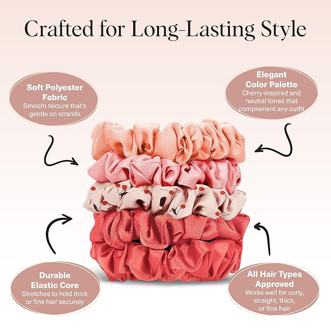 Kitsch Satin Scrunchies for Women - No Crease Hair Ties for Girls | Scrunchies For All Hair Types and Textures, Perfect for Day or Night | Ideal Gifts for Women - Assorted Cherry Blossom, 5pcs