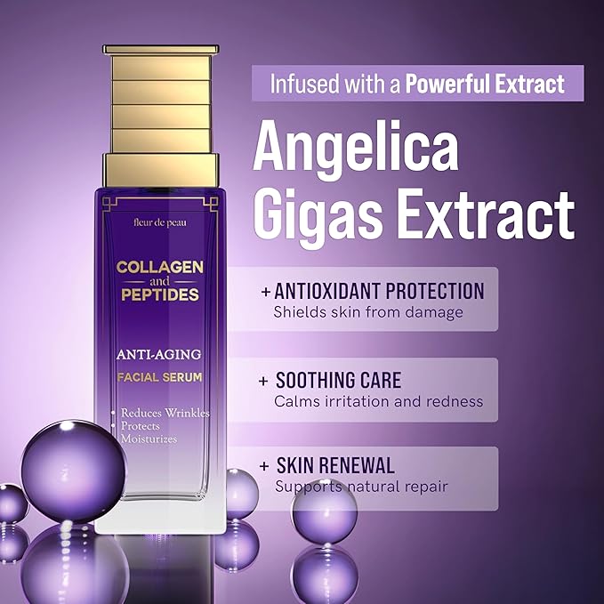 Fleur De Peau Collagen & Peptides Serum For Face - Dermatologist Tested, Anti-Aging, Ultra Hydrating, Plumping & Firming, for Fine Lines & Wrinkles - Clean Beauty, Vegan Korean Skin Care - 1.69 FL. Oz