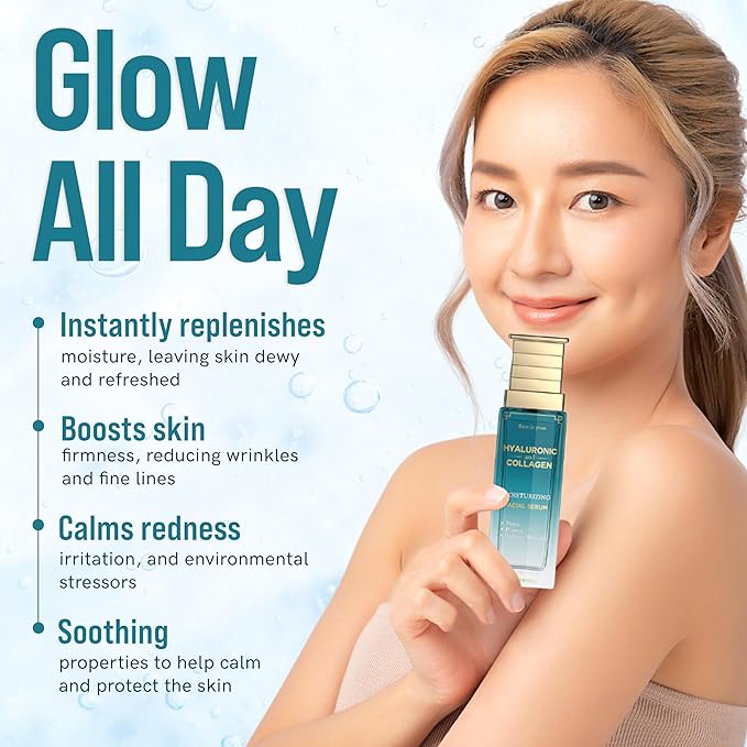 - DEEP HYDRATION & SKIN FIRMING - Instantly quench dry skin with intense moisture while restoring firmness and firmness. Hyaluronic Acid deeply penetrates to hydrate, plump, and smooth, while Collagen reinforces the skin barrier, reducing wrinkles and fine lines for a more youthful appearance.