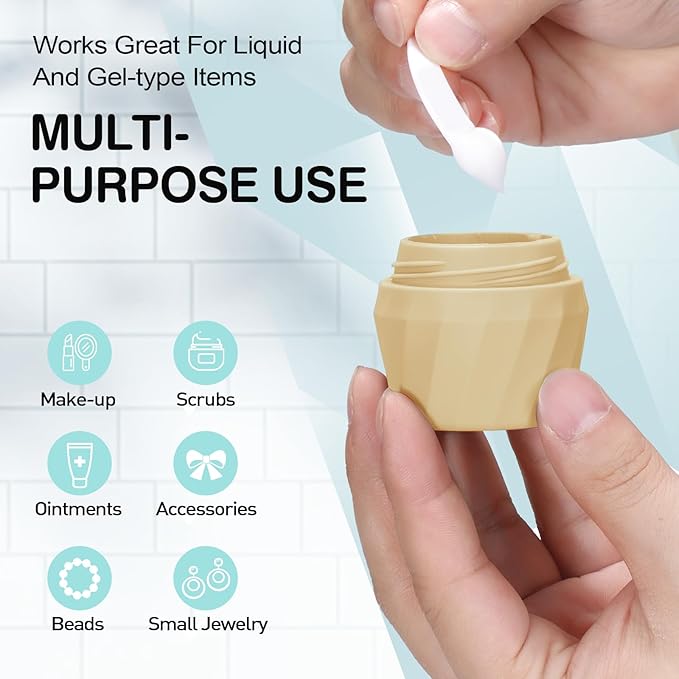- 【MULTI-PURPOSE USE】14pack Travel Bottles for Toiletries have multiple uses. Travel Size Toiletries Containers Set can store creams, coconut oil, lotions, make-up, scrubs, ointments, accessories, beads, small jewelry, and more. Works great for liquid and gel-type items