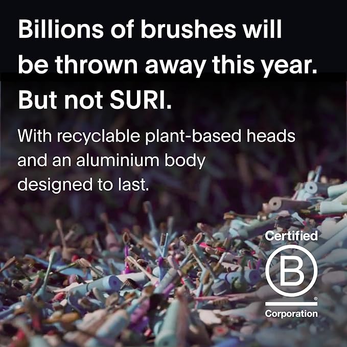 - RECYCLABLE PLANT-BASED HEADS and BRISTLES - SURI's eco-conscious electric toothbrush uses brush heads made of renewable cornstarch, and medium-soft bristles made from castor oil. SURI also offers a simple and FREE recycling service in the US